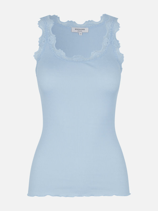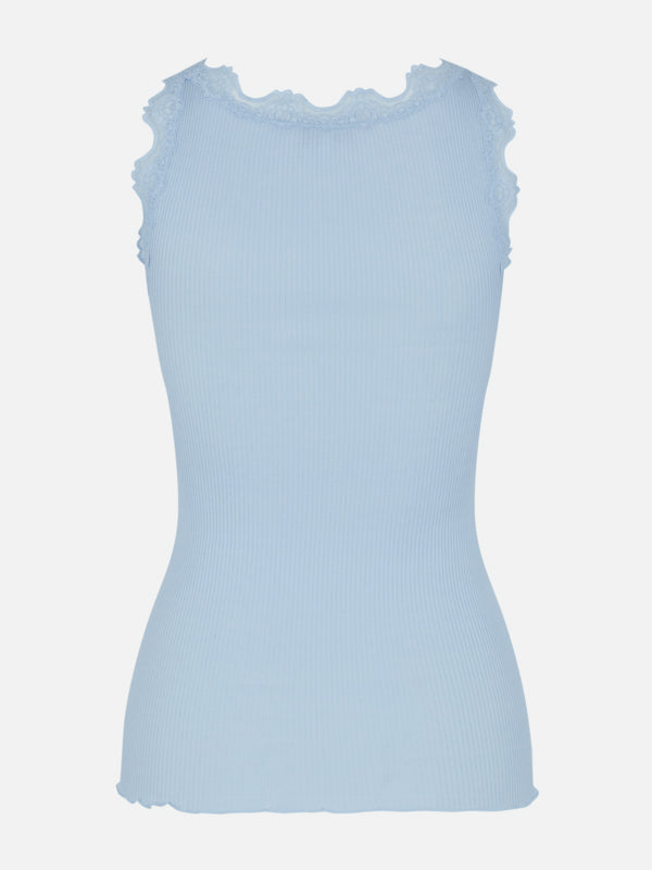 Classic Silk Top With Lace - Heather Sky
