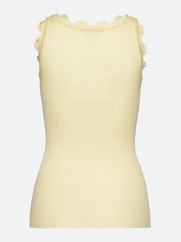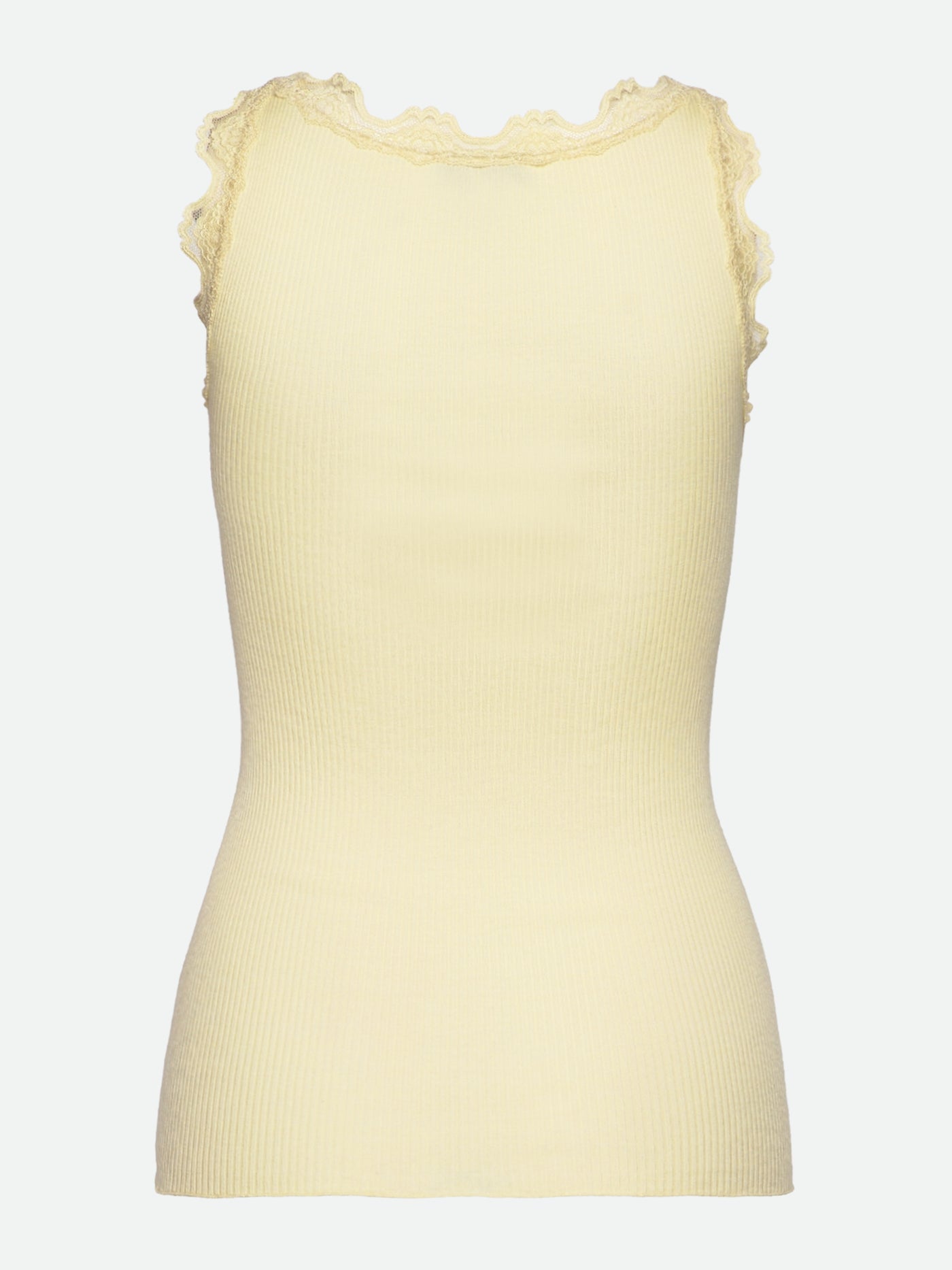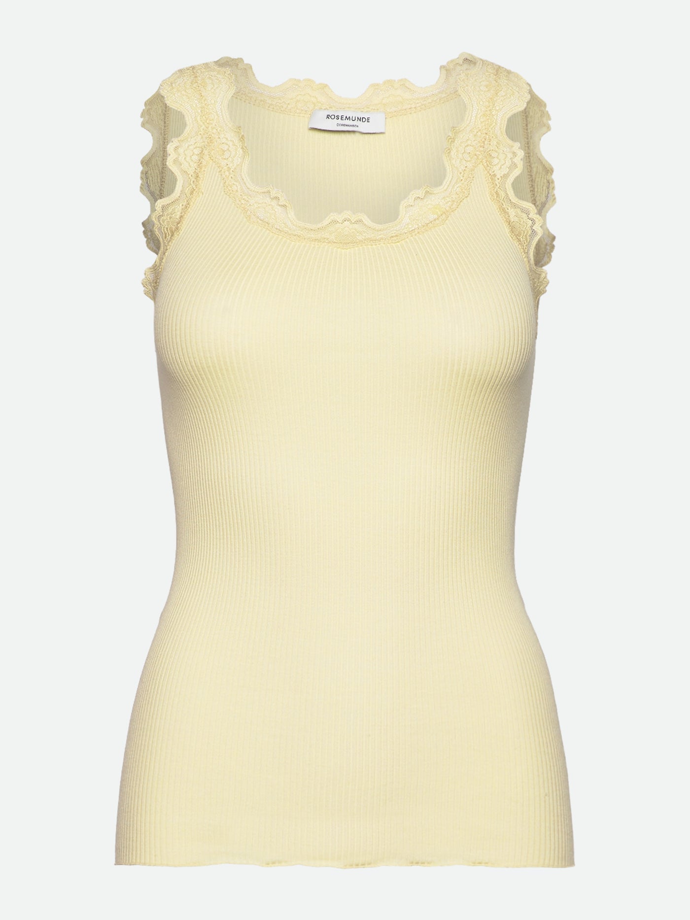 Rosemunde Classic silk top with lace är en favorit i vår butik. Den har ett vackert uttryck med fina detaljer. Toppen är feminin och är tillverkad i en mjuk silkesmix i en blandning av siden och bomull, vilket gör att den blir väldigt bekväm att ha mot kroppen. Spetsen är vackert lagd runt halsringningen och har en vacker frillkant längst ner, vilket kompletterar den vackra looken. Toppen har inga sömmar och är därför väldigt bekväm att bära både under en skjorta eller stickad tröja men också som en vanlig basöverdel.