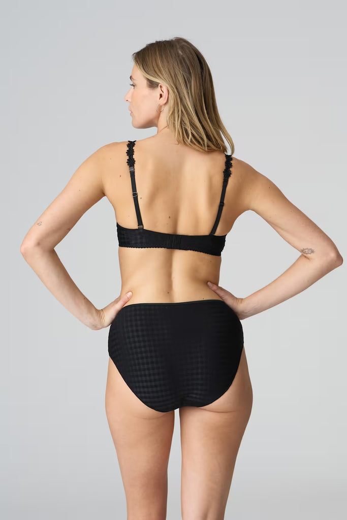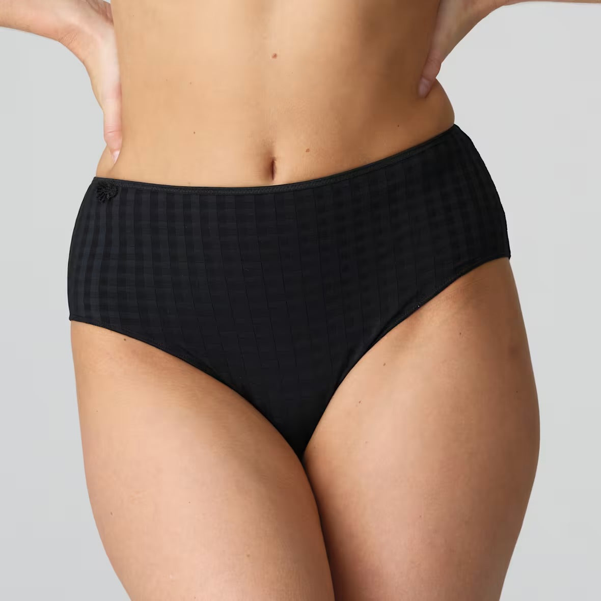 Marie Jo Avero Full Brief är en hög, bekväm och stabil trosa som sitter där den ska utan att rulla ned. Den omsluter med en trygg och följsam passform, och kvaliteten är nästan oöverträffad – en favorit som håller i åratal.